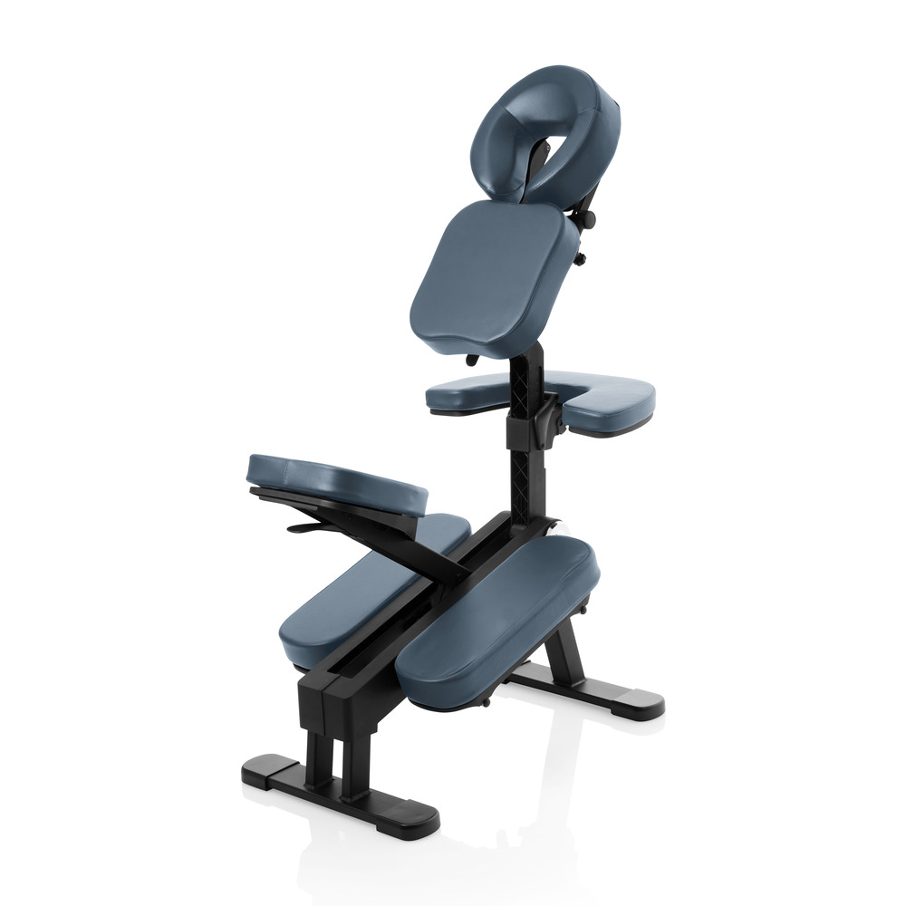De bekleding van de massagestoel bestaat uit soepel en milieuvriendelijk PU-leer. Dit materiaal voelt prettig aan op de huid en is zeer onderhoudsvriendelijk. Olie en vuil zijn eenvoudig te verwijderen met een vochtige doek, wat bijdraagt aan een hygiënische werkomgeving. De frisse blauwe kleur geeft de stoel een professionele en rustgevende uitstraling.