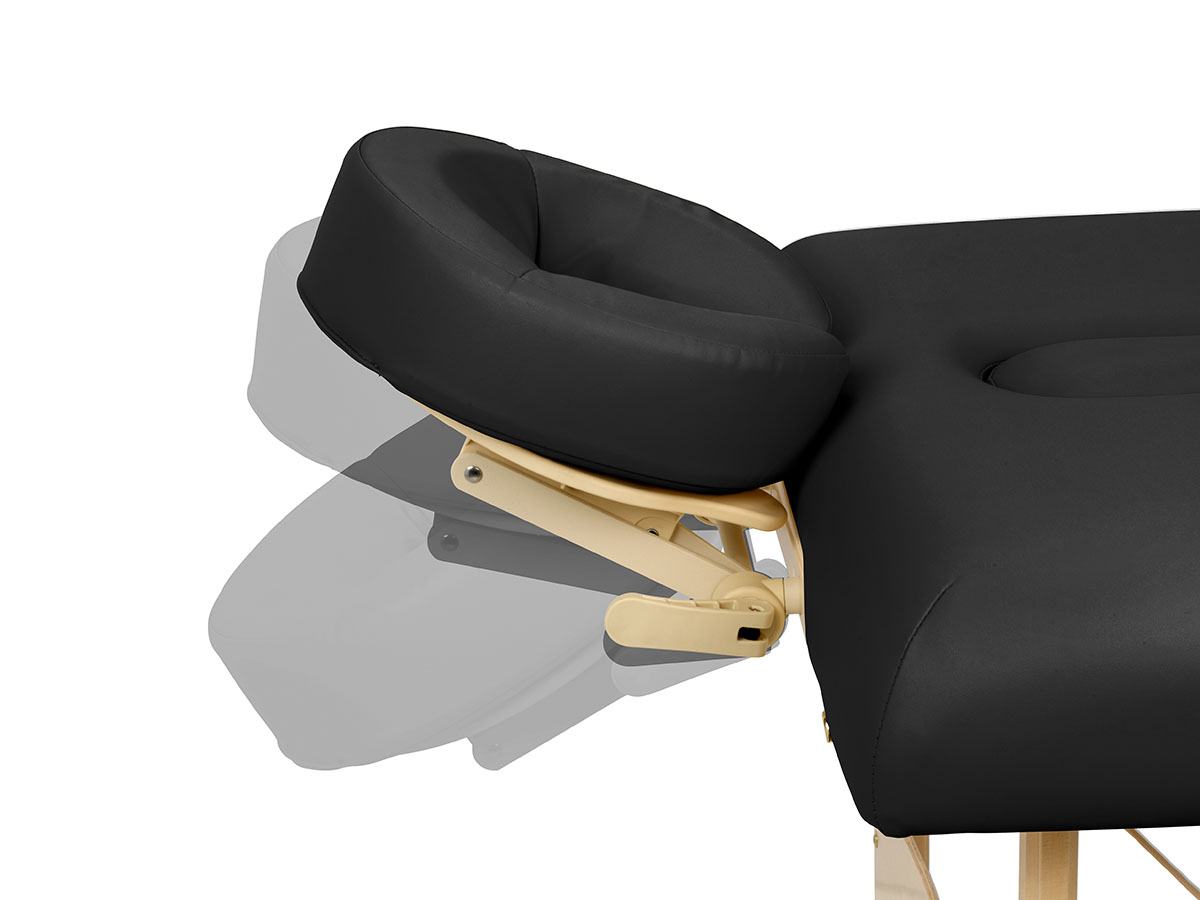 De massagetafel is in enkele eenvoudige stappen op te zetten en in te klappen. Het meegeleverde aluminium hoofdsteunsysteem is voorzien van een ‘ultra soft’ kussentje dat zich vormt naar het gezicht, wat drukpunten en strepen na de behandeling minimaliseert.