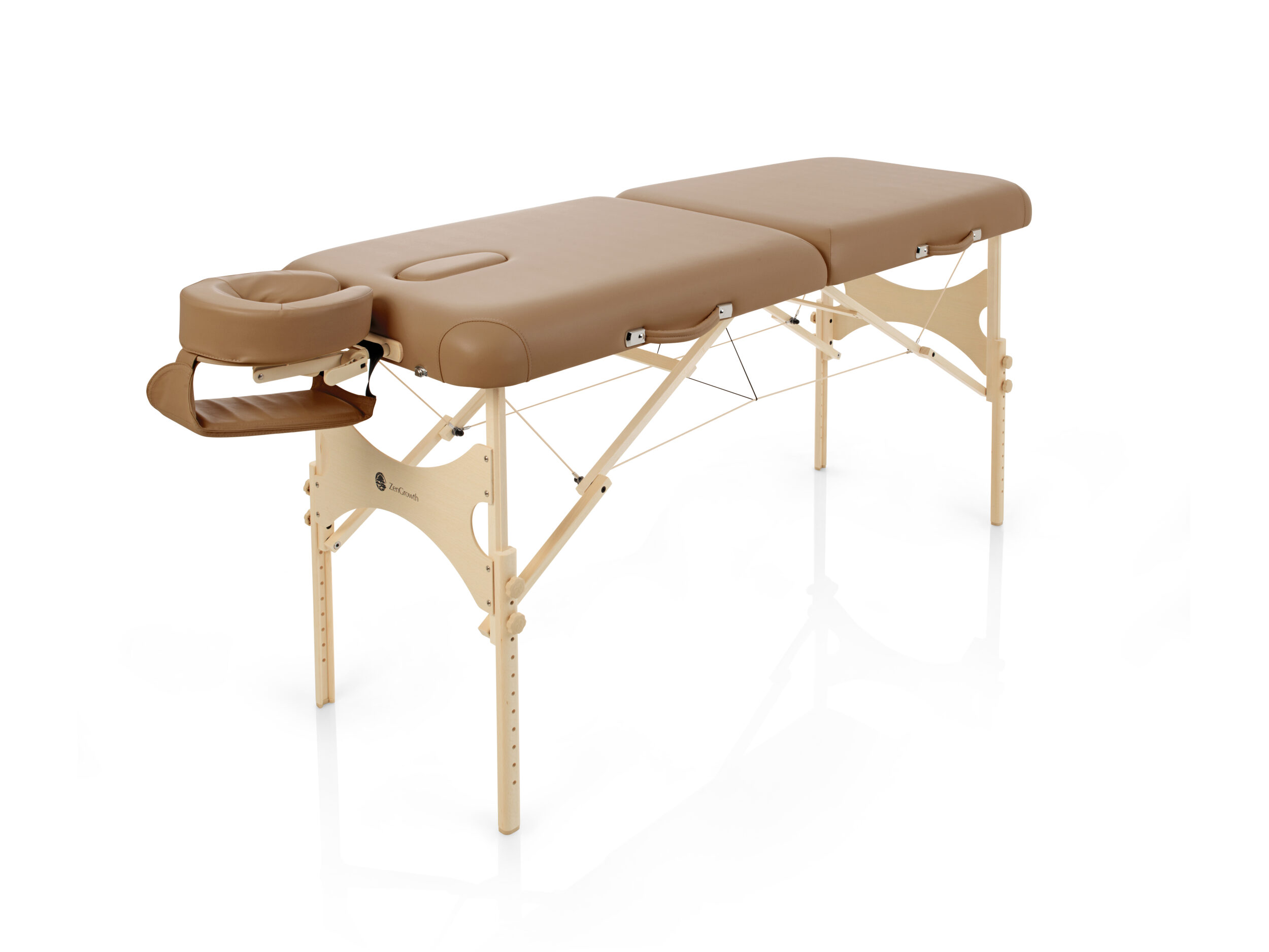 De massagetafel is in enkele eenvoudige stappen op te zetten en in te klappen. Het meegeleverde aluminium hoofdsteunsysteem is voorzien van een ‘ultra soft’ kussentje dat zich vormt naar het gezicht, wat drukpunten en strepen na de behandeling minimaliseert.